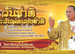 Read More5 ธันวาคม เนื่องในวันคล้ายวันพระบรมราชสมภพ พระบาทสมเด็จพระบรมชนกาธิเบศร มหาภูมิพลอดุลยเดชมหาราช บรมนาถบพิตร วันชาติ และวันพ่อแห่งชาติ น้อมรำลึกในพระมหากรุณาธิคุณเป็นล้นพ้นอันหาที่สุดมิได้ ด้วยเกล้าด้วยกระหม่อม ขอเดชะ ข้าพระพุทธเจ้าคณะผู้บริหาร ครู บุคคลากร ผู้ปกครองและนักเรียน นักศึกษา วิทยาลัยเทคโนโลยีอมตะ