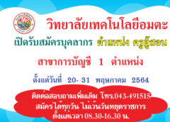 วิทยาลัยเทคโนโลยีอมตะ เปิดรับสมัครบุคลากรตำแหน่ง ครูผู้สอน