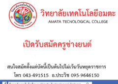 วิทยาลัยเทคโนโลยีอมตะเปิดรับสมัคครูช่างยนต์ สนใจสมัคได้ที่วิทยาลัยเทคโนโลยีอมตะ ไม่เ…