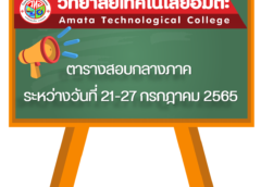 วิทยาลัยเทคโนโลยีอมตะ ดำเนินการจัดสอบกลางภาค ประจำภาคเรียนที่ 1 ปีการศึกษา 2565 ระหว่างวันที่ 21-27 กรกฎาคม 2565 ตามตารางสอบดังนี้