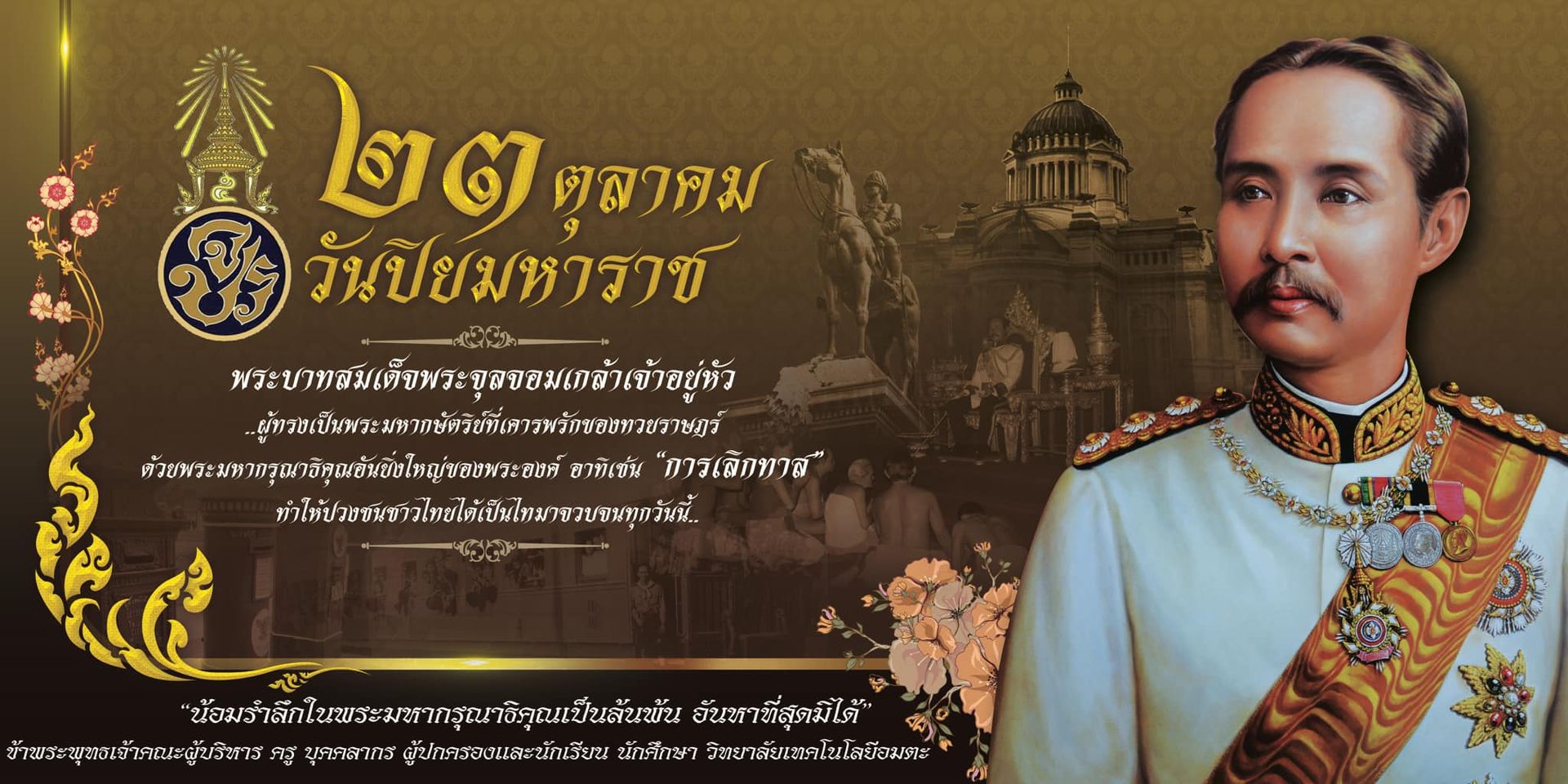 ๒๓ ตุลาคม วันปิยมหาราช พระบาทสมเด็จพระจุลจอมเกล้าเจ้าอยู่หัว ..ผู้ทรงเป็นพระมหากษัตริย์ที่เคารพรักของทวยราษฎร์ ด้วยพระมหากรุณาธิคุณอันยิ่งใหญ่ของพระองค์ อาทิเช่น “การเลิกทาส” ทำให้ปวงชนชาวไทยได้เป็นไทมาจวบจนทุกวันนี้..“น้อมรำลึกในพระมหากรุณาธิคุณเป็นล้นพ้น อันหาที่สุดมิได้”ข้าพระพุทธเจ้าคณะผู้บริหาร ครู บุคคลากร ผู้ปกครองและนักเรียน นักศึกษา วิทยาลัยเทคโนโลยีอมตะ