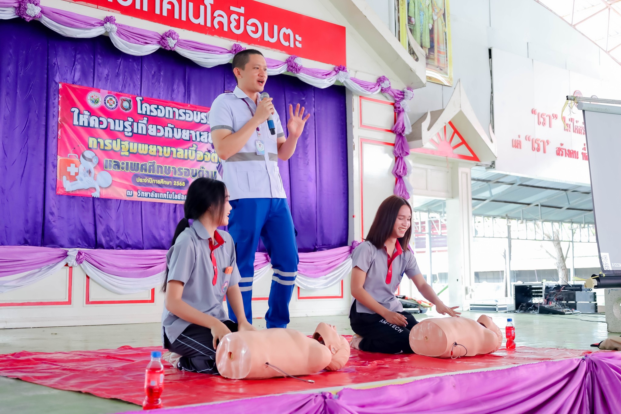 วันที่ 26 มิถุนายน 2568 วิทยาลัยเทคโนโลยีอมตะ ได้จัดอบรมให้ความรู้การปฐมพยาบาลเบื้องต้นและเพศศึกษารอบด้าน ให้กับนักเรียน นักศึกษา โดยมี นายปวิช ถ้วยแก้ว รองผู้อำนวยการฝ่ายวิชาการ เป็นประธานในพิธี พร้อมด้วยคณะผู้บริหาร ครู อาจารย์ และนักเรียน นักศึกษา เข้าร่วมกิจกรรม และได้รับเกียรติจาก นายธนณัฏฐ์ ศักดิ์ปริญญา ตำแหน่งพยาบาลวิชาชีพชำนาญการ โรงพยาบาลหนองสองห้อง พร้อมคณะ มาเป็นวิทยากรให้ความรู้ แก่นักเรียน นักศึกษา ณ โรงยิมรัตนาภรณ์ วิทยาลัยเทคโนโลยีอมตะ